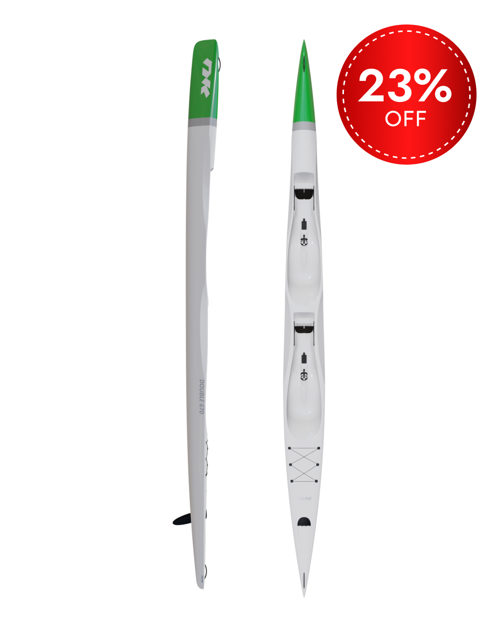 I bought a 670 Double as an upgrade from a Think. At only 14kg it is super easy to put on my high car roof alone & comes with dual rudder control which is great for learners. Of the 5 different rear crew I've paddled with, all agree it is fast!